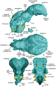 | 12:43, 11 sty 2015 | Conchoraptor brain 2.png (plik) | 4,25 MB | Rekonstrukcja mózgu ''Conchoraptor'' w widokach: (A) prawym bocznym; (B), od góry; (C), od przodu; (D), od tyłu źródło: Balanoff, A.M., Bever, G.S. & Norell, M.A. (2014) "Reconsidering the Avian Nature of the Oviraptorosaur Brain (Dinosauria: | 1 | |