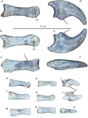 | 16:10, 22 lip 2016 | Gualicho manual digits.JPG (plik) | 947 KB | "Left manual digits of Gualicho shinyae. Digit I phalanges in (A, D) medial, (B, E) lateral, and (C, F) dorsal views. Digit II phalanges in (G-I) medial, (J-L) lateral, and (M-O) dorsal views. Abbreviations: clp, collateral ligament pit; ft, flexor tuberc | 1 | |