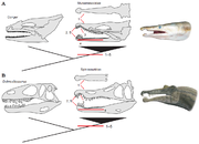 | 11:24, 4 wrz 2016 | Spinosauridae i Muraenesocidae.PNG (plik) | 352 KB | Podobieństwa w budowie Muraenesocidae (A) i Spinosauridae (B). Po lewej plezjomorficzna budowa krewniaków. Cechy: 1) wydłużone, waskie szczęki, 2) "rozeta" (rozszerzone końce szczęk), 3) wgłębienie przed "rozetą" i odpowiadająca mu dolna "rozet | 1 | |