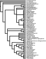 | 11:53, 31 lip 2016 | Smith i in. 2008 Megaraptor Tetanurae.PNG (plik) | 44 KB | Kladogram z Smith, N.D., Makovicky, P.J., Agnolin, F.L., Ezcurra, M.D., Pais, D.F. & Salisbury, S.W. (2008) "A Megaraptor -like theropod (Dinosauria: Tetanurae) in Australia: support for faunal exchange across eastern and western Gondwana in the Mid-Creta | 1 | |
