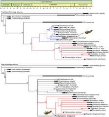 Wersja z dnia 06:13, 14 paź 2024 autorstwa Paweł (dyskusja | edycje) (Kladogram z Mallon i in., 2016 Mallon J.,C., Ott, C.,J., Larson, P., L., Iuliano, E., M., Evans, D., C., (2016) "''Spiclypeus shipporum'' gen. et sp. nov., a Boldly Audacious New Chasmosaurine Ceratopsid (Dinosauria: Ornithischia) from the Judith Rive...)