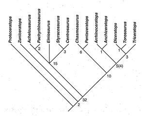 Wersja z dnia 19:47, 7 lis 2024 autorstwa Paweł (dyskusja | edycje) (Kladogram z Dodson i in., 2004 Dodson, P., Forster, C. A. & Sampson, S. D. (2004). "Ceratopsidae". [w]: Weishampel, D.B., Dodson, P. & Osmólska, H. "The Dinosauria" Berkeley and Los Angeles: University of California Press, 494-513.)