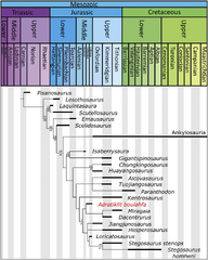 Wersja z dnia 17:31, 28 wrz 2025 autorstwa Kamil Kamiński (dyskusja | edycje) (Kladogram z Maidment i in., 2020. Maidment, S. C. R., Raven, T. J., Ouarhache, D., & Barrett, P. M. (2020). "North Africa's first stegosaur: Implications for Gondwanan thyreophoran dinosaur diversity". Gondwana Research, 77(82-97). doi:10.1016/j.gr.201...)