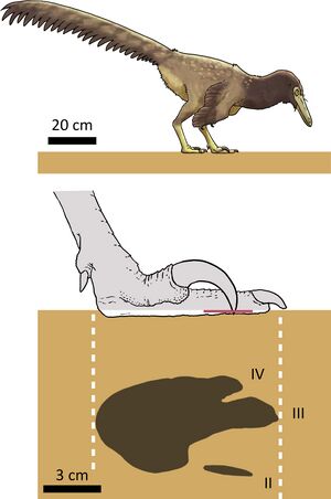Tropy te pozostawił niedużej wielkości teropod mający trzy palce u stopy. | |||