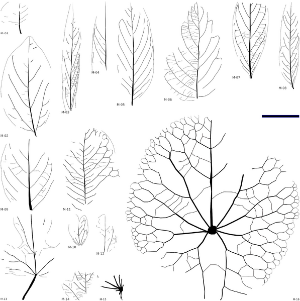 Schemat przedstawiający wybrane morfotypy roślin z formacji Bahariya. Źrodło: El Atfy i in., 2023 [1]