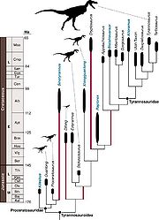 | 10:21, 10 lis 2011 | Brusatte i in., 2009.jpg (plik) | 43 KB | Nazuul | Skalibrowany stratygraficznie kladogram z Brusatte i in., 2009 (na podstawie Carr i Williamson, 2010 z dodanym ''Alioramus'' ''altai'' i ''Xiongguanlong''). ''Xiongguanlong'' następnie usunięto, gdyż tworzył poli | 1 | |