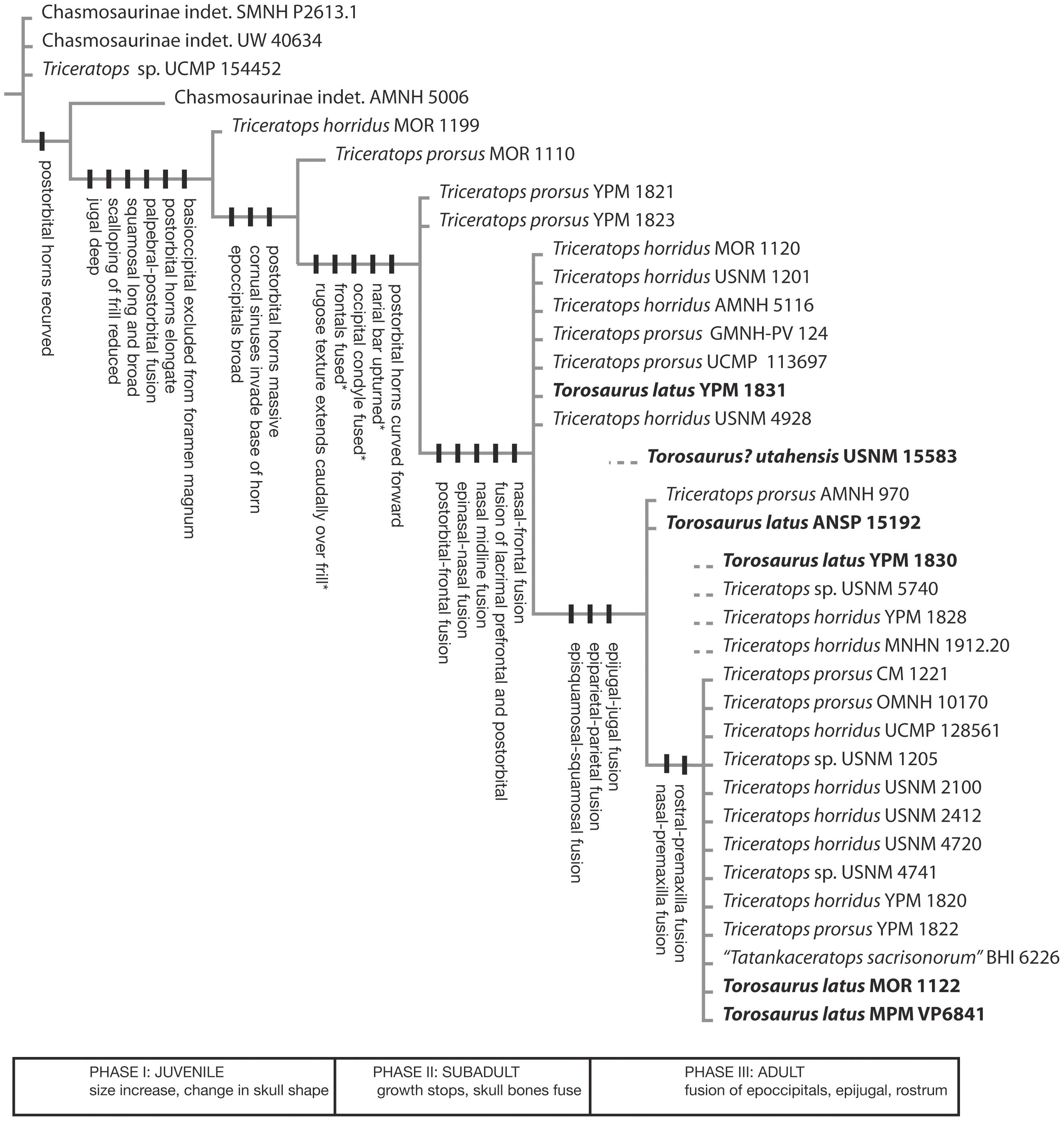 | 10:43, 1 gru 2013 | Torosaurus analiza Longrich i Field 2012 fig5.png (plik) | 742 KB | Nazuul | Wynik analizy ontogenetycznej Longricha i Fielda (2012), ukazujący stadia rozwojowe i cechy na nie wskazujące. Okazy ''Torosaurus'' są pogrubione. Okazy z liniami prowadzącymi do nich miały niepewną pozycję w ramach odpowiednich stadiów. Gwiazdką | 1 | |