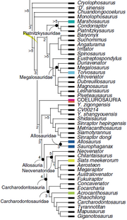 | 22:35, 16 gru 2013 | Sánchez-Hernández i Benton, 2013.PNG (plik) | 92 KB | Nazuul | Kladogram z Sánchez-Hernández i Benton, 2013 (na podstawie Carrano i Sampson, 2008 z dodanymi ''Camarillasaurus'' i ''Limusaurus''). Od góry: konsensus po usunięciu ''Abelisaurus'', ''Aucasaurus'' i ''Deltadromeus'', drzewa konsens | 2 |