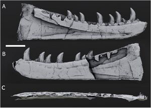 Evans, O., Howells, C., Wintle, N., Benton, M.J. (2025). "Re-assessment of a large archosaur dentary from the Late Triassic of South Wales, United Kingdom". Proceedings of the Geologists' Association: 101142. doi:10.1016/j.pgeola.2025.101142