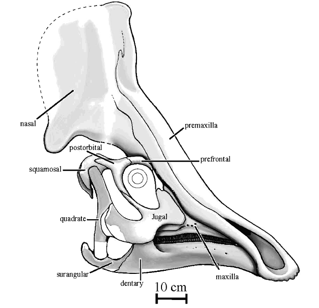| 00:05, 26 gru 2011 | Special foramina.jpg (plik) | 177 KB | Widok od strony językowej na szczękę górną i dolną ''Corythosaurus casuarius'' (ROMZP 1933). Na czerwono zaznaczono ''special foramina''. Zgnieciona kość szczękowa spowodowała zniekształcenie niemal okrągłych otworów w szczęce górnej. | 1 | |