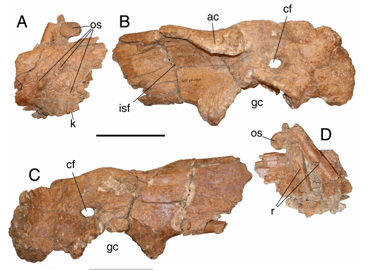 | 01:42, 8 gru 2011 | Spinops3.png (plik) | 28 KB | Schematized parietals of centrosaurine ceratopsids in dorsal view, showing possible homologies for the first four epiparietal loci. A. Alberta− ceratops nesmoi Ryan, 2007. B. Spinops sternbergorum gen. et sp. nov. C. Centrosaurus apertus Lambe, 1902. D. | 1 | |