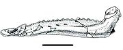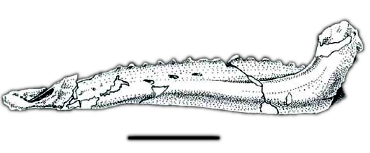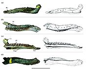 | 20:37, 13 gru 2011 | Ratchasimasaurus2.jpg (plik) | 204 KB | Zdjęcia i szkice lewej kości zębowej ''Ratchasimasaurus suranareae'' w widoku: a) grzbietowym; b) środkowym, c) wewnętrznym, d) bocznym. Oznaczenia skrótów: Alt - rów zębodołowy (''alveolar trough''); Bs - blaszka policzkowa(''buccal shelf'' | 1 | |