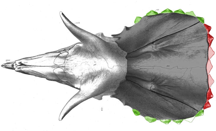 | 23:29, 7 gru 2011 | Epiparietal.jpg (plik) | 104 KB | Czaszka ''Triceratops'' w widoku z góry. Na zielono zaznaczone ''episquamosales'', na czerwono - ''epiparietales'' (źródło: [http://www.johnscannella.com/Triceratops.php] - zmodyfikowane z Hatcher i in., 1907). | 2 | |