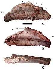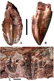 | 20:17, 13 gru 2011 | Ratchasimasaurus1.jpg (plik) | 82 KB | Holotyp ''Ratchasimasaurus suranareae'' ('''NRRU-A2064''') - kość zębowa w widoku bocznym. Skala: 5 cm. © Shibata ''et al.'', 2011. | 1 | |