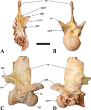 21:54, 17 paź 2016 Fig-18-full.png (plik) 2,07 MB Nazuul Tytuł: Figure 18: NHMUK PV R 16429, anterior cervical vertebra of an indeterminate spinosaur. Autor/źródło: Evers, S.W., Rauhut, O.W.M., Milner, A.C., McFeeters, B. & Allain, R. (2015) "A reappraisal of the morphology and systematic position of the t 1