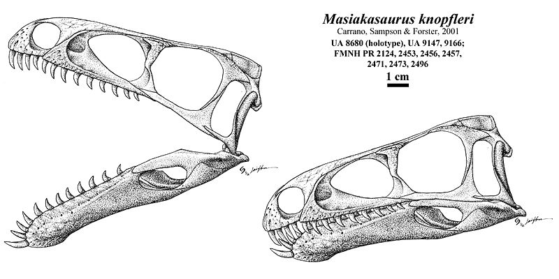 - Plik:Masiakasaurus knopfleri skull reconstruction.jpg na Wikimedia Commons
