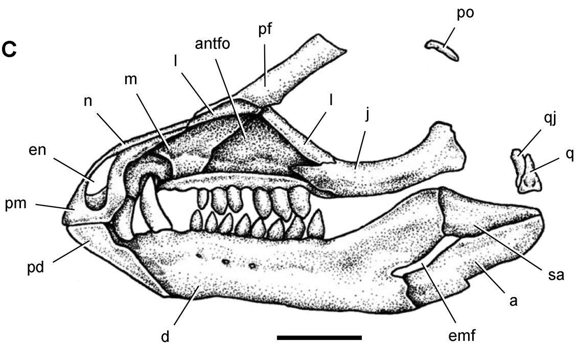 Tianyulong. Czaszka holotypu (z Sereno, 2012; za Zheng i in., 2009).