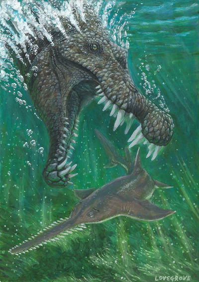 Amiot, R., Buffetaut, E., Lécuyer, C., Wang, X., Boudad, L., Ding, Z., Fourel, F., Hutt, S., Martineau, F., Medeiros, M.A., Mo, J., Simon, L., Suteethorn, V., Sweetman, S., Tong, H., Zhang, F. & Zhou, Z. (2010) "Oxygen isotope evidence for semi-aquatic habits among spinosaurid theropods" Geology 38, 139-142.