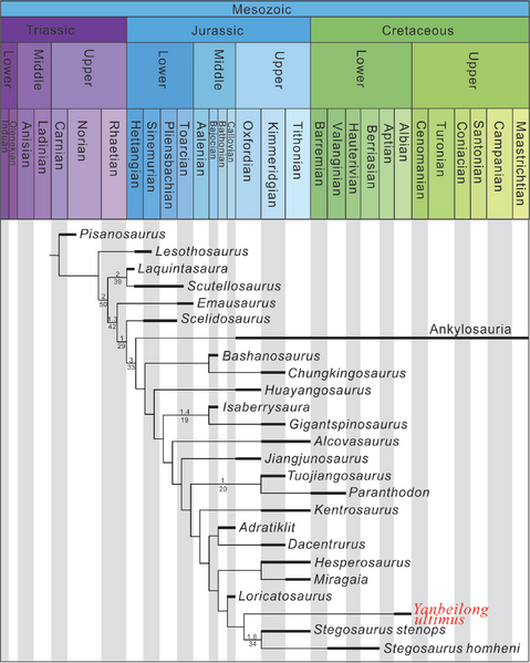 Kladogram zJia L., Li N., Dong L., Shi J., Kang Z., Wang S., Xu, S. & You, H. (2024). "A new stegosaur from the late Early Cretaceous of Zuoyun, Shanxi Province, China". Historical Biology. doi:10.1080/08912963.2024.2308214 Jia i in., 2024.