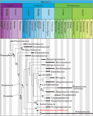 Kladogram z Dai i in., 2022. Dai, H., Li, N., Maidment, S.C.R., Wei, G., Zhou, Y., Hu, X., Ma, Q., Wang, X., Hu, H. & Peng, G. (2022). "New stegosaurs from the Middle Jurassic Lower Member of the Shaximiao Formation of Chongqing, China". Journal of Vertebrate Paleontology, 41:5, e1995737. doi:10.1080/02724634.2021.1995737