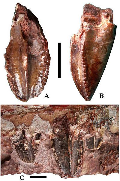 Wersja z dnia 19:59, 25 gru 2011 autorstwa Dino (dyskusja | edycje) (Zęby ''Siamodon nimngami'' - izolowany ząb kości szczękowej z materiału przypisanego ('''PRC-5''') w widoku a) wargowym, b) środkowym; c) zbliżenie na zęby znajdujące się na holotypie ('''PRC-4''') w widoku wargowym. Skala: 10 mm)