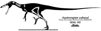 Currie, P. J., & Paulina Carabajal, A. (2012). "A new specimen of Austroraptor cabazai Novas, Pol, Canale, Porfiri and Calvo, 2008 (Dinosauria, Theropoda, Unenlagiidae) from the Latest Cretaceous (Maastrichtian) of Río Negro, Argentina". Ameghiniana, 49(4), 662-667. doi:10.5710/AMGH.30.8.2012.574