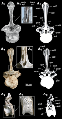 - ↑ Windholz, G. J., Porfiri, J. D., Dos Santos, D., Bellardini, F., & Wedel, M. J. (2024). "A well-preserved vertebra provides new insights into rebbachisaurid sauropod caudal anatomical and pneumatic features". Acta Palaeontologica Polonica. 69 (1): 39–47. doi:10.4202/app.01104.2023