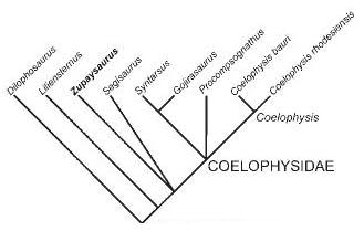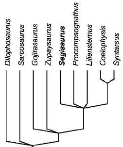Kladogram z Tykoski i Rowe, 2004. Cienką linią zaznaczono niepewną pozycję Segisaurus wśród Coelophysidae.