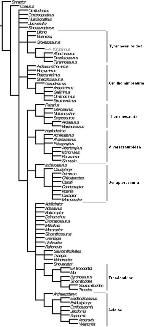 Kladogram z Xu i in., 2012B (na podstawie Choiniere, 2010A z dodanym Yutyrannus).