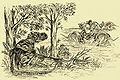 Rekonstrukcja szkieletu Tyrannosaurus (z Osborn, 1917). Zwróć uwagę na półwyprostowaną sylwetkę, trójpalczaste kończyny przednie i długi ogon - obecnie wiadomo, że są to cechy niepoprawne.