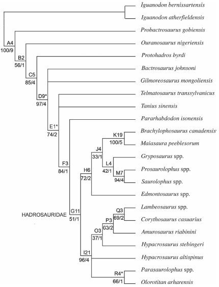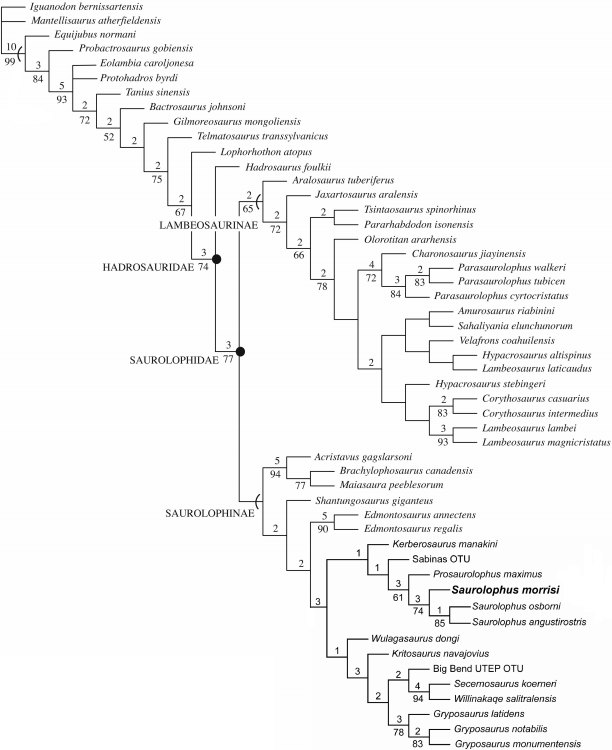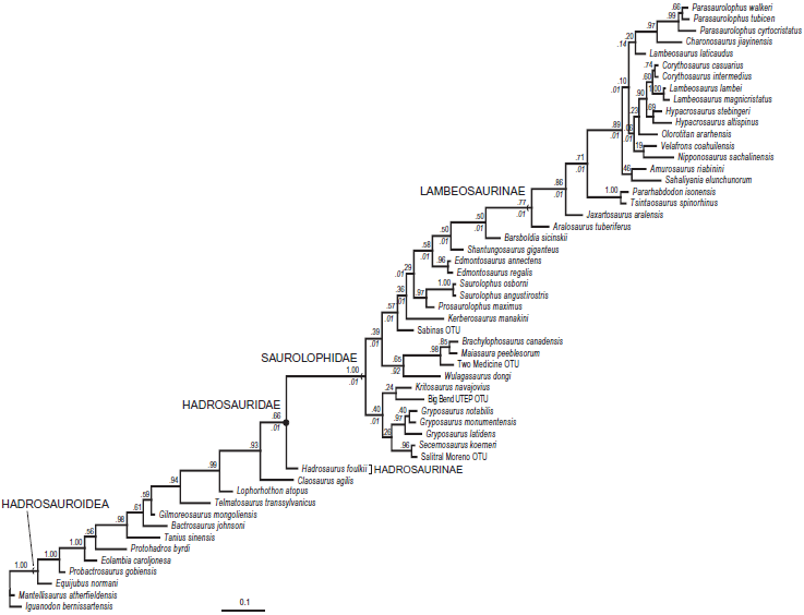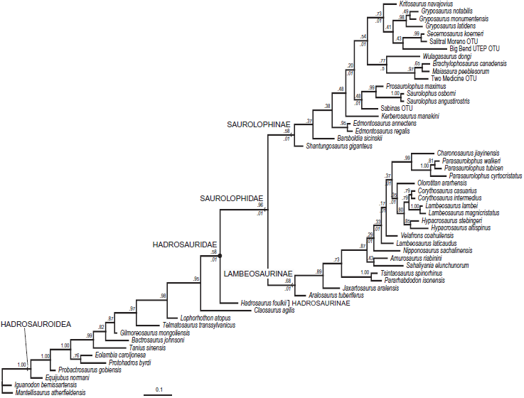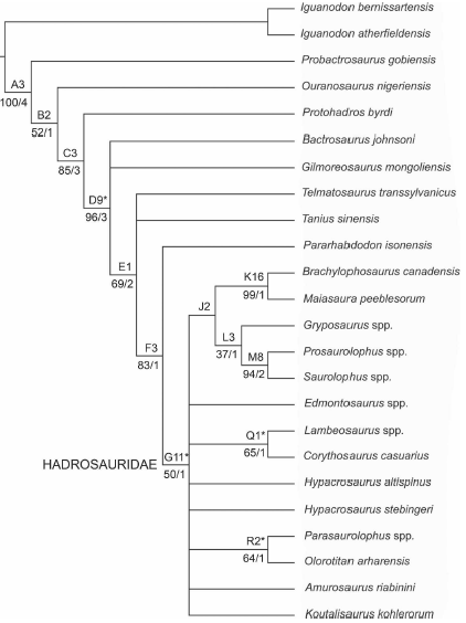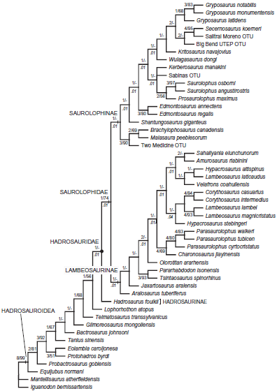 Prieto-Márquez, A. (2010A) "Global phylogeny of Hadrosauridae (Dinosauria: Ornithopoda) using parsimony and Bayesian methods" Zoological Journal of the Linnean Society, 159, 435-502. doi: 10.1111/j.1096-3642.2009.00617.x