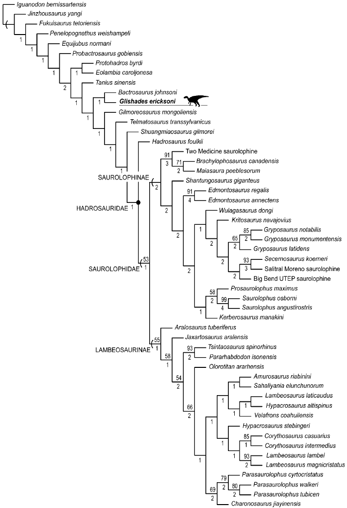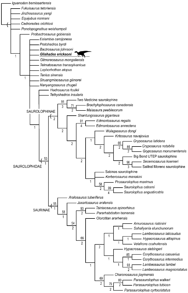 Prieto-Márquez, A. (2010B) "Glishades ericksoni, a new hadrosauroid (Dinosauria: Ornithopoda) from the Late Cretaceous of North America" Zootaxa, 2452, 1-17.