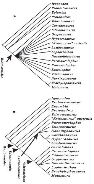 <Lambeosaurus lambei & Hadrosaurus foulkii (zmodyfikowano z Forster, 1997)