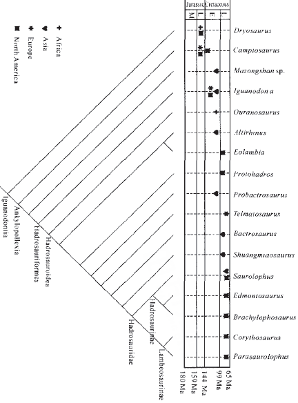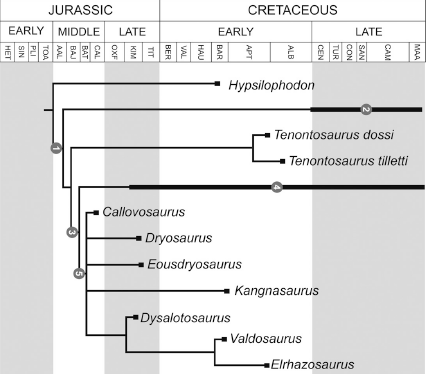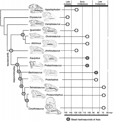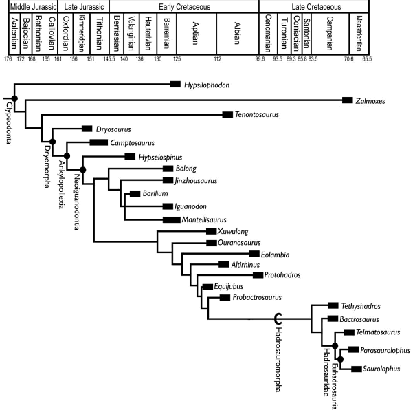 <Iguanodon bernissartensis & Parasaurolophus walkeri (Sereno, 2005; zmodyfikowano z Sereno, 1998)