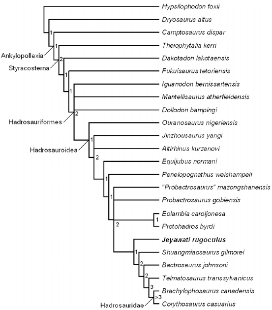 Head, J.J. (2001) "A reanalysis of the phylogenetic position of Eolambia caroljonesa (Dinosauria, Iguanodontia)" Journal of Vertebrate Paleontology, 21, 392-396.