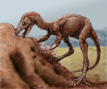 Rekonstrukcja Kol jako alwarezzauryda, który rozkopuje gniazdo termitów [1] | |