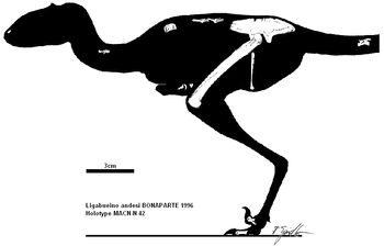 Rekonstrukcja holotypu ligabueino. Paliczek stopy tak naprawdę był paliczkiem dłoni. [2]] | |