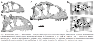 Sampson, S.D. & Witmer, L.M. (2007) Craniofacial anatomy of Majungasaurus crenatissimus (Theropoda: Abelisauridae) from the Late Cretaceous of Madagascar. Journal of Vertebrate Paleontology, Volume 27, Supplement to Number 2 - Society of Vertebrate Paleontology Memoir 8: 32 – 102.
