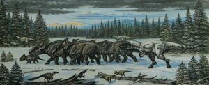 Według paleontologów 70 milionów lat temu tereny dzisiejszej Alaski były częścią kontynentu nazwanego Laramidia. Klimat na tych terenach był zapewne chłodny oraz występowały dni i noce polarne. Prawdopodobnie w okresie letnim wzrastała dostępność pożywienia dla drapieżników, lecz podczas ciemnej zimy liczba potencjalnych ofiar spadała znacząco (choć wg badań Chinsamy i in. z 2012 r. żyjące na dalekiej północy hadrozaurydy nie migrowały na południe). Większy opis paleośrodowiska zobacz w Pachyrhinosaurus#P._perotorum.