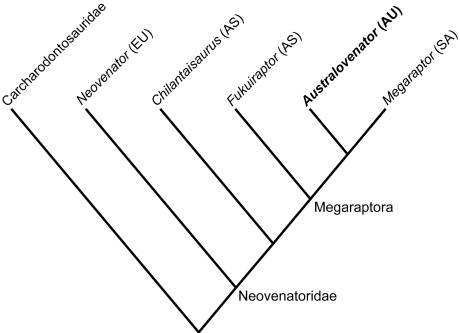 Carrano, M.T., Benson, R.B.J. & Sampson, S.D. (2012) "The phylogeny of Tetanurae (Dinosauria: Theropoda)" Journal of Systematic Palaeontology, 10(2), 211-300. doi:10.1080/14772019.2011.630927.