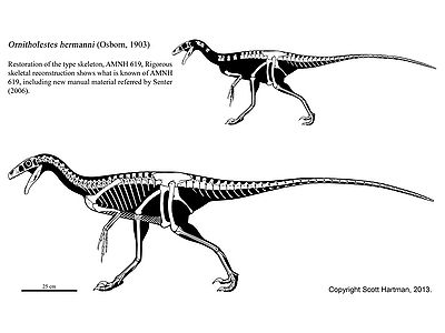Osborn, H.F. (1903) "Ornitholestes hermanni, a new compsognathoid dinosaur from the Upper Jurassic" Bulletin of the American Museum of Natural History. 19, 459-464.