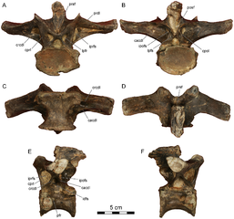 Kręg grzbietowy Dahalokely, prawdopododobnie D2. Źródło: Farke i Sertich, 2013. doi:10.1371/journal.pone.0062047. Licencja: Creative Commons Attribution License