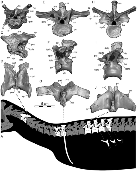 Rekonstrukcja fragmentu szkieletu Dahalokely z zaznaczeniem znalezionych kości. Źródło: Farke i Sertich, 2013. doi:10.1371/journal.pone.0062047.]] Licencja: Creative Commons Attribution License.