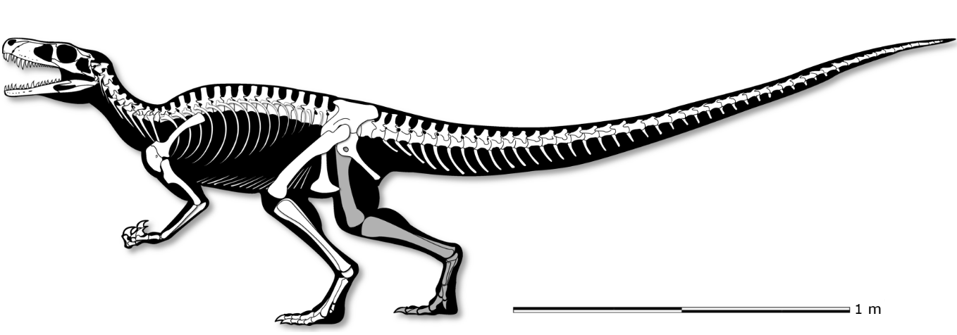 Rekonstrukcja szkieletu Gnathovorax. Źródło: Pacheco C, Müller RT, Langer M, Pretto FA, Kerber L, Dias da Silva S. 2019. Gnathovorax cabreirai: a new early dinosaur and the origin and initial radiation of predatory dinosaurs. PeerJ 7:e7963 http://doi.org/10.7717/peerj.7963 Licencja: Creative Commons CC-BY 4.0