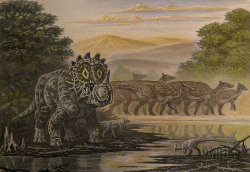 Źródło: https://www.deviantart.com/abelov2014/art/Sinoceratops-Homalocephale-Saurolophus-614711473