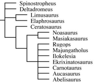 Kladogram z Xu i in., 2009 - I (na podstawie Smith i in., 2007 z dodanymi 59 cechami z Carrano i Sampson, 2008 oraz dodatkowymi taksonami).