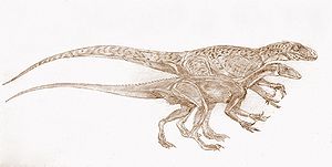 Ezcurra M. 2007. The cranial anatomy of the coelophysoid theropod Zupaysaurus rougieri from the Upper Triassic of Argentina. Historical Biology, t. 19, nr 2, str. 185-202.