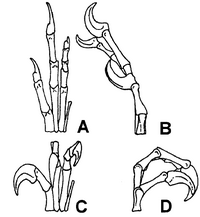 Dłoń celofyza widoczna z różnych stron w pozycji maksymalnie odgiętej do tyłu i zaciśniętej. Źródło: Carpenter, 2002.
