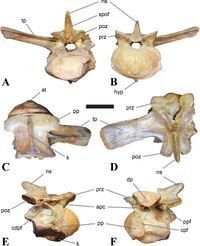 Holotyp (CMN 41857): pierwszy kręg grzbietowy, opisany przez Russella (1996) i błędnie uznany przez niego za kręg szyjny (Evers i in., 2015).