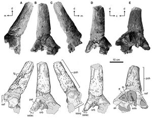 - ↑ Wilson, J. P., Ryan, M. J., & Evans, D. C. (2020). "A new, transitional centrosaurine ceratopsid from the Upper Cretaceous Two Medicine Formation of Montana and the evolution of the ‘Styracosaurus-line'dinosaurs". Royal Society Open Science, 7(4), 200284. doi:10.1098/rsos.200284